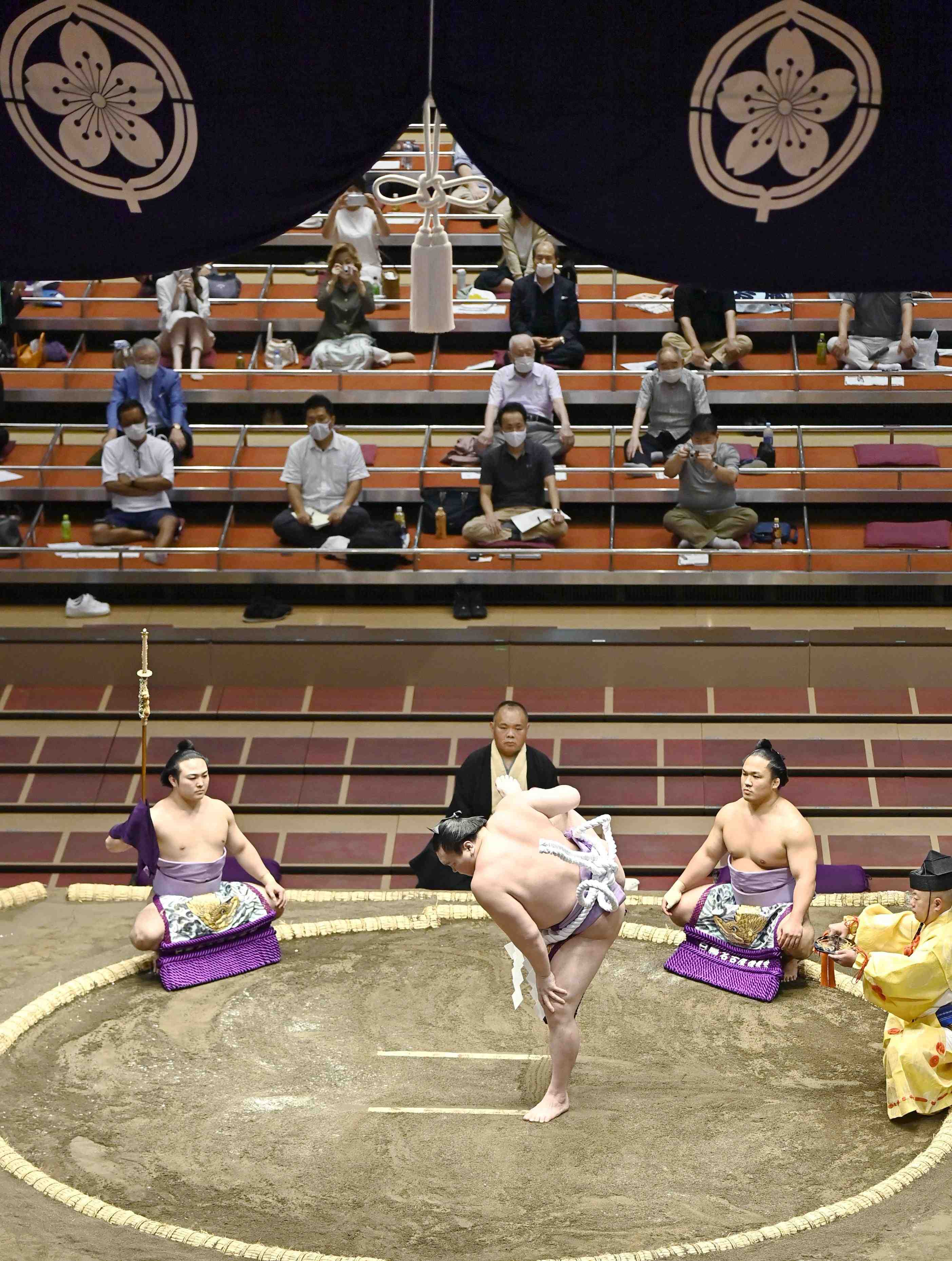 A quiet day at the basho: Sumo wrestles on, without the crowd's loud ...